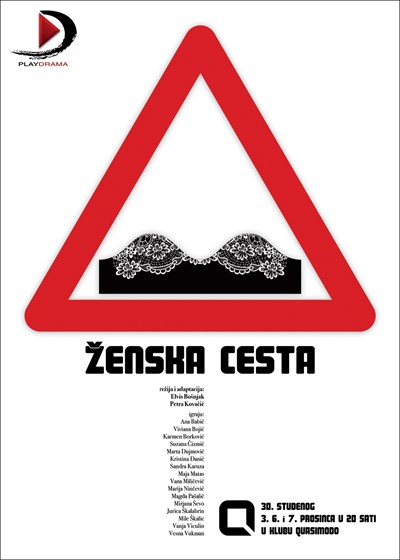 Ženska cesta govori na duhovit način o položaju žene u posttranzicijskom društvu.  Od nje se očekuje da u poslovnom svijetu bude jednako uspješna kao i muškarac, ne i jednako plaćena, ali da u kuhinji i dalje bude sama. Žena vodi velike projekte, ona danas vozi i kamione, autobuse, ona džogira da bi se oslobodila stresa, ona ne stiže dijete prebaciti u novu školu. Ona juri po životu kao što automobile jure višetračnim cestama. I onda jedan ovakav sudar sve zaustavi. Sve ambicije postanu nevažne, potrebe se promijene i stvara se jedan novi, kreativniji i zabavniji svijet. U tom svijetu prestaje biti važno tko je to. Jasnu ulogu imaju samo muškarci, oni su policajci.
